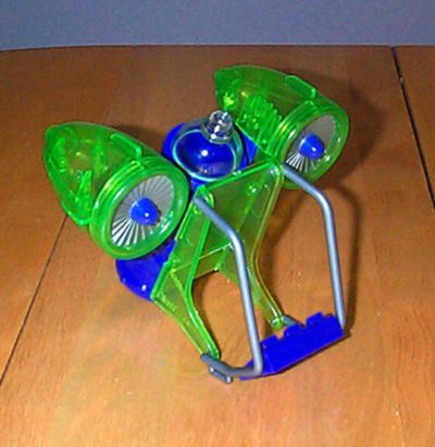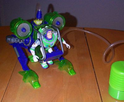 This is the original Buzz Lightyear Space Hopper that was clearing at KB for $9.99. The functionality is that of an air pump and a piston. The central piston pushes a leg at the rear up, making the entire contraption hop. Kinda cool, but completely useless. |