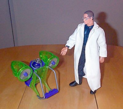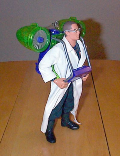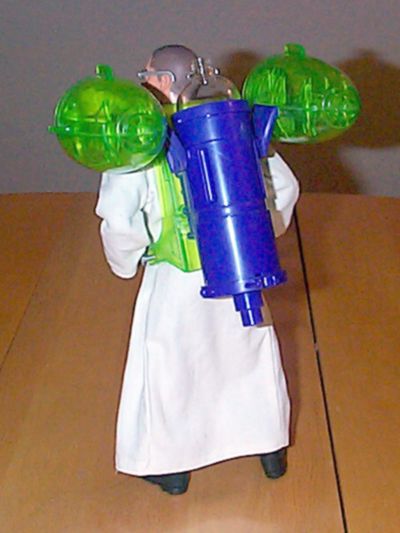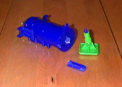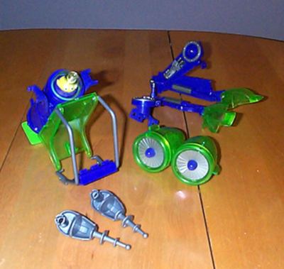 the laser weapons. I thought the laser weapons would make interesting jet interiors for the clear-plastic jet engines, but I couldn't get them open. I'll try again later. I think they'd look cool if they had engine parts inside, kind of like the legs of Mike Power, hinting at the machinery inside the clear casings. |