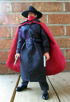 I took the carton from a Universal Monsters "Invisible Man" figure, strapped The Shadow to the built-in figure stand, and designed my own label for The Shadow. Click any image for a closeup.
