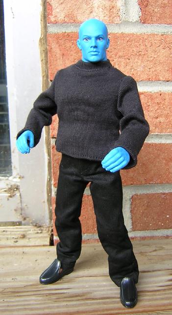 For years I've wanted to create a Blue Man custom. For most of that time, I was missing only a good black sweater that would work. It had to look like the Blue Man black top. Finally, with the release of the Tactical Advisor with black sweater, the last remaining piece of the puzzle was in place.