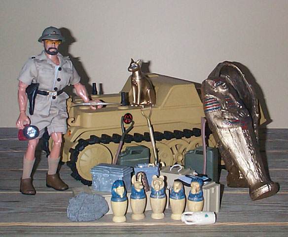 I believe the finest of the original Adventure Team sets was the Mummy's Tomb set. Here's a picture of my updated version, using pieces from various toys I've collected over the past year. The showpiece is a customized Kettenkrad, a tracked German WWII vehicle.