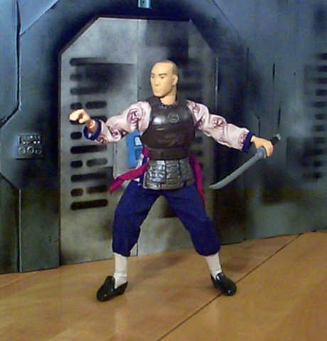 This is the Japanese Soldier GI Joe wearing the Captain Li Shang outfit, with Captain Action shoes. He's also wearing the new Max Steel Samurai Warrior breastplate. He's wielding the new Max Steel katana from the same set. I just thought the breastplate and sword looked nice enough to do a quick custom.