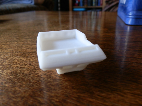 Afinia was good enough to offer to print me a sample item if I sent them an .STL file (standard file format for 3D printing.) I wanted to see how feasible it was to print a Space 1999 Moonbuggy so I downloaded a model from the internet just for testing purposes. Meanwhile I began to model my own. But for now this would do.
