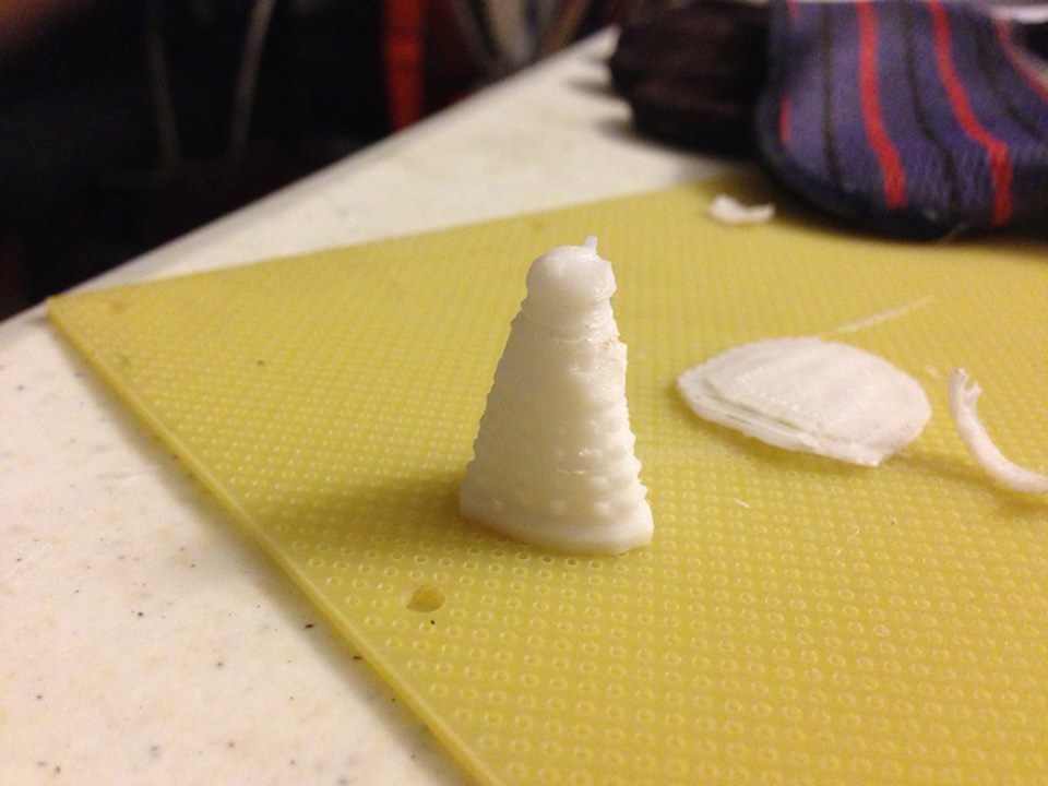 I looked into the Form-1 and I found that while the process is fascinating (it actually prints using a laser which hardens the liquid resin on a flat surface that’s lowered into a shallow tray of resin. It hardens a layer onto this surface, and lifts it slowly out of the tray of resin, printing layer after layer, and you see the whole thing rise up upside-down out of this shallow bath of resin.