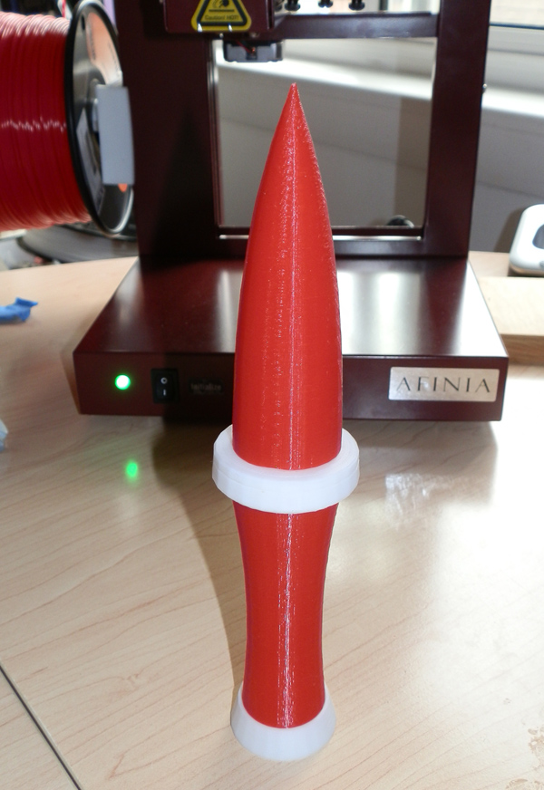 About 8 months ago, I guess, I bought Make Magazine’s special edition on 3D printing in which they pitted somewhere around a dozen different home-priced 3D printers and ranked them. I read through those articles, saw the test prints, and they ranked the Afinia H479 their “Best In Show” for various criteria. Where they lost out was on speed. But when I think about it, speed is not that important for the patient. Where they really won was in accuracy and precision. And in ease of use. It is touted as one of the first “out of the box” printers you can just plug and print.